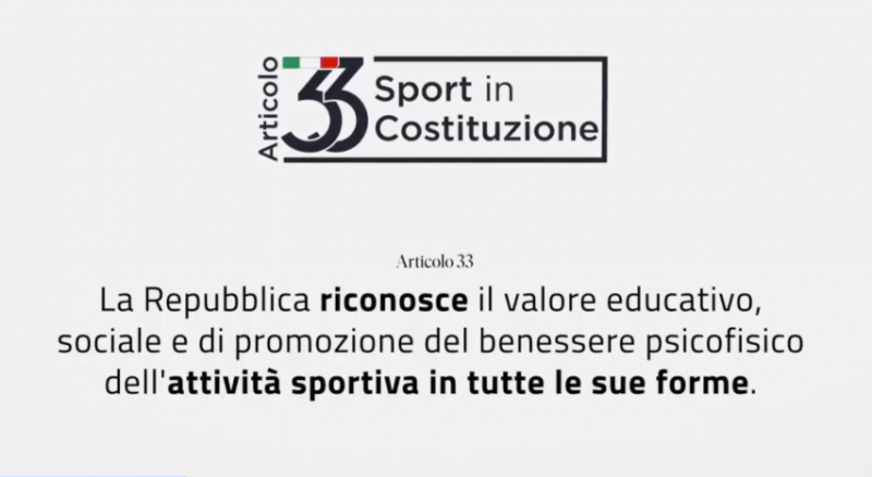 “SPORT IN COSTITUZIONE” AL VIA LA CAMPAGNA TV SULL’ARTICOLO 33
