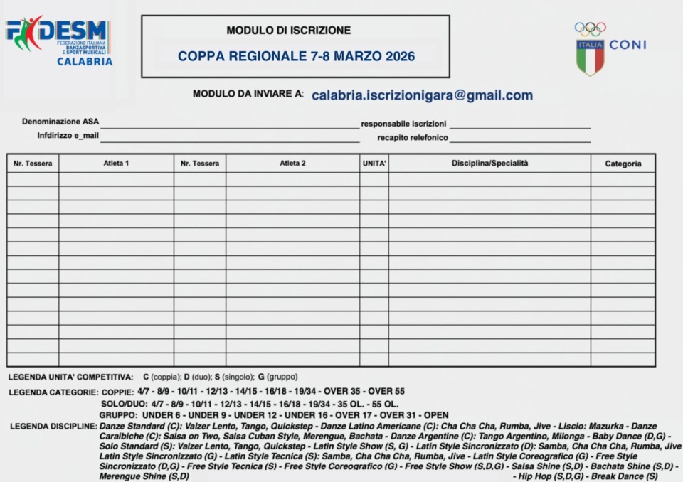 Modulo di Adesione Coppa Regionale